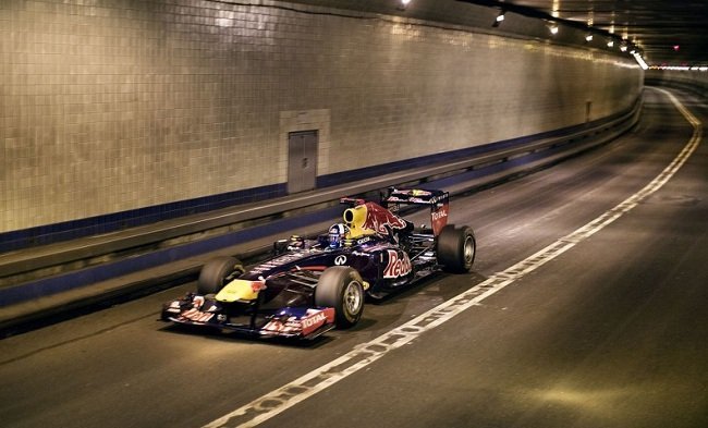Para este rodaje, el equipo desplazó dos RB7 a Estados unidos. Con ellos y David Coulthard al volante se grabaron imágenes del Red Bull volando bajo por lugares como Liberty State o Port Imperial. La guinda llega con el escocés rodando a casi 300 Km/h a través del túnel Lincoln (nada que ver con la denigrante película de Abraham Lincoln Caza-Vampiros) en lo que sí es un verdadero espectáculo visual.