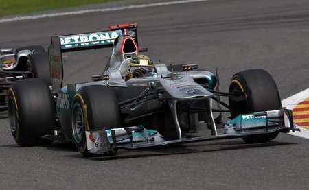 Vimos a un Schumacher distinto a partir de entonces. Quizás fué la motivación que le dió el quedarse cerca del podio, el saber que puede hacerlo cuando las condiciones se igualan, pero le vimos más combativo y más acertado, aunque siguieron existiendo algunos errores como el toque con Kamui Kobayashi en Gran Bretaña. Pasaron las carreras y llegamos a Bélgica. En Mercedes estaban muy confiados, con Michael celebrando su vigésimo aniversario en la Fórmula 1. Aunque todo se fué al traste con una rueda suelta en la sesión clasificatoria, y el veterano piloto alemán tuvo que salir desde la última posición de la parrilla de salida.