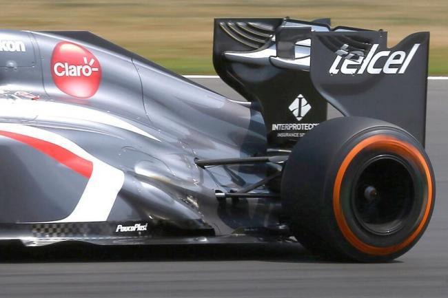 En medio de las pruebas que se desarrollan en Silverstone, el equipo Sauber ha presentado varias modificaciones en su C32; la más radical de ellas es el nuevo sistema de escapes en forma descendente. Como se observa en la fotografía, el diseño es similar al aplicado por los equipos Red Bull y Lotus. Según explicaciones técnicas, con tal configuración se intenta lograr una mayor carga aerodinámica en la zona posterior debido a que el flujo de aire se combina con los gases del escape y ambos se desplazan hacia abajo hasta alcanzar una zona en particular, ubicada en el piso del coche, sobre la línea central del difusor.