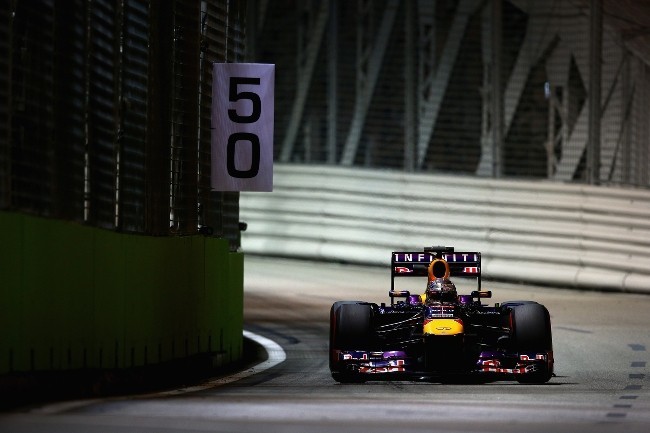 Sorprendente pole la conseguida hoy por Sebastian Vettel en el Gran Premio de Singapur. Tras la segunda y tercera sesión de entrenamientos libres, con el alemán marcando el mejor tiempo, lo visto hoy en la clasificación nos demuestra que Vettel y Red Bull están un paso por delante. O quizás dos. Marcar un excelente tiempo en la Q3, con más de medio segundo de ventaja, es un buen síntoma pero de ahí a desechar un segundo intento va un mundo. Ahora podemos especular: van sobrados, querían el juego de neumáticos nuevos para mañana, tienen problemas de degradación...Cuestión de especular.