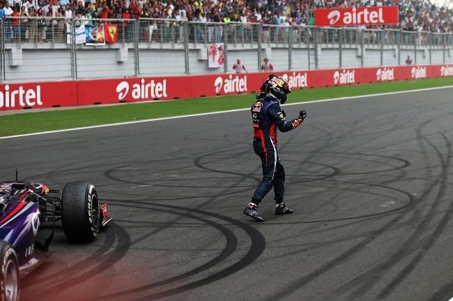 Era de esperar. A la FIA y la FOM no le gusta nada el olor a goma quemada y el humo que provocan los monoplazas cuando hacen ceros o donuts. Un acto, que a su modo de ver, no está a la altura de la máxima categoría. Por eso, cuando hemos visto como el alemán llegaba a la recta de meta con su RB9 y se ponía a celebrar su título con esta maniobra sabíamos que iba a tener consecuencias.