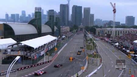 La habitual locura en la curva 3 de Toronto provocó la mayor parte de las banderas amarillas, incluido un susto protagonizado por Montoya y Aleshin pues el ruso impactó con el coche del colombiano, levantando éste y quedando el casco del antiguo campeón de Fórmula Renault 3.5 bajo una de las ruedas del coche de Penske. De hecho hubo hasta una bandera roja a pocos minutos del final para así asegurar que la carrera acabara bajo bandera verde.