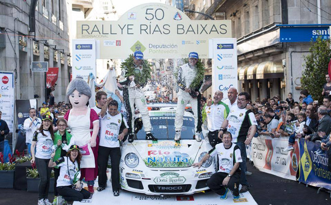 La primera de las tres pruebas gallegas del Campeonato de España de Rallyes de Asfalto, tríptico habitual partido este año por la inclusión del Rallye del Bierzo, la quincuagésima edición del Rally Rías Baixas, tuvo lugar este pasado fin de semana con dominio de los equipos locales, que marcaron todos los scratchs salvo el último en juego, y triunfo final de Sergio y Diego Vallejo a lomos de su Porsche 911 GT3.