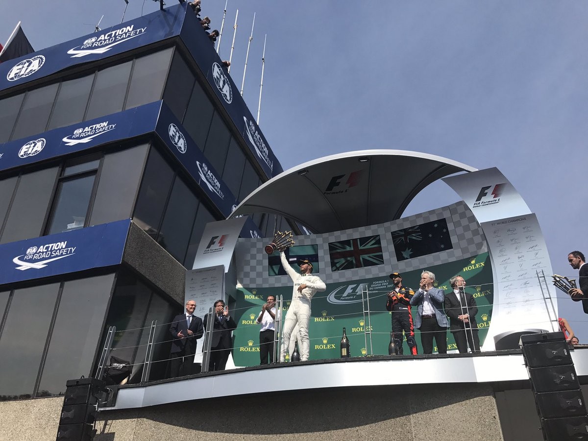 Junto a él en el podio ha terminado un discreto Valtteri Bottas y Daniel Ricciardo. Gran actuación de los pilotos de Red Bull, a pesar de que un problema dejó fuera de juego a Max Verstappen en los primeros compases de la carrera cuando rodaba en la segunda posición.