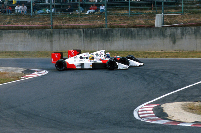 Segundo round. Un año después de la gran batalla, Senna y Prost volvían a encontrase luchando por el mundial en Suzuka. El brasileño volvió a hacerse con la pole position pero le tocó salir por el lado sucio de la pista porque se había decidido invertir de lado las posiciones de salida.