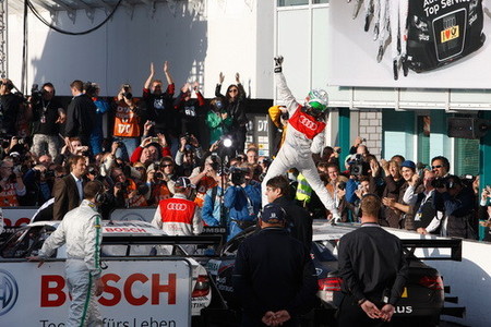 Precioso fin de fiesta el que hemos vivido hoy en Hockenheim. Con Gary Paffet en segunda posición y Timo Scheider en tercera, era de esperar que vivieramos una carrera trepidante, y por suerte para todos los que la hemos visto en televisión, así ha sido. Británico y alemán dirimían el título, pero por delante Mattias Ekström también tenía mucho que decir.