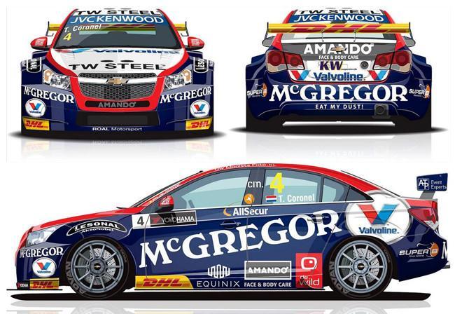 Contrariamente a las noticias iniciales, en las que el mismo indicaba que veía difícil conseguir el apoyo necesario para contar con un TC1 en 2014, Coronel finalmente ha conseguido el dinero. Es más, viendo la decoración que luce el Cruce, parece que apoyos no le han faltado. Tras la presentación oficial del nuevo Chevrolet Cruze TC1 la pasada semana, los colores que utilizará Tom Romeo Coronel (Tim Alfa es su hermano y su padre un entusiasta de los Alfa Romeo) seguirán siendo el azul de la firma de ropa McGregor (propiedad del suegro de Giedo Van der Garde).