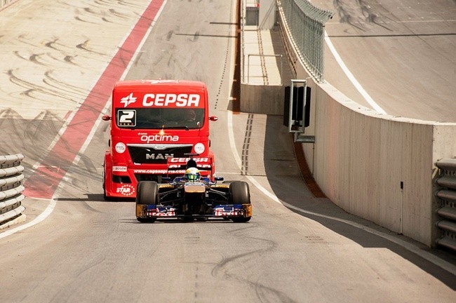 Tampoco es que veamos un enfrentamiento directo, más allá de contar algunos datos sobre todo para los que desconocen las brutales prestaciones de los camiones, casi más sorprendentes que las que pueden tener un Fórmula 1 teniendo en cuenta la diferencia en dimensiones y pesos. Un par de vídeos para disfrutar: