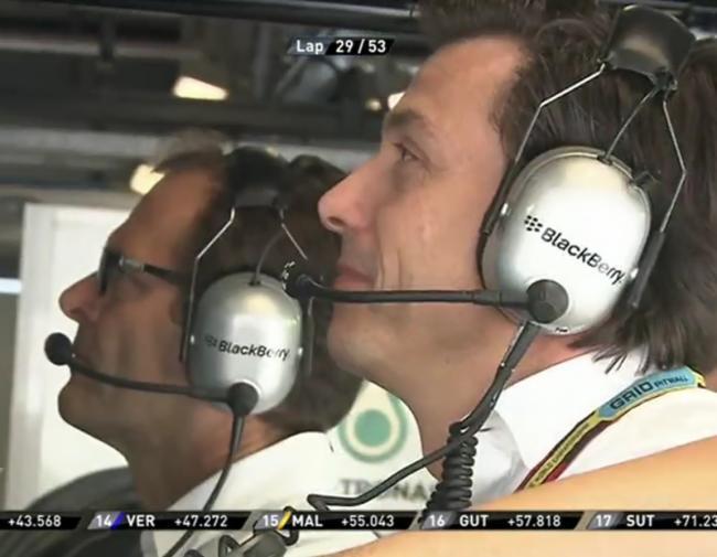 Realmente es una locura que cualquier persona interprete esa imagen de la forma cómo lo han hecho, deben haber perdido la cabeza. Ahora la Fórmula 1 es como Gran Hermano; la próxima vez me escondo en la oficina y me llevo a los ingenieros. Sí, tenía una sonrisa en mi rostro, pero no cuando ambos [Hamilton y Rosberg] estaban cerca luchando la delantera.