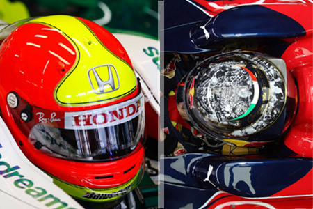 Os dejo una galería de fotos del casco especial de Sebastian Vettel y del de Rubens Barrichello.
