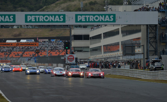 Todo esto hay que combinarlo con la debacle de los Nissan GT-R de la máxima categoría. El Calsonic tuvo que abandonar por una salida de pista, mientras que el oficial número 23 sufrió un drive through y terminó en octava posición. Se salvó el Nissan Reito Mola de Satoshi Motoyama y Yuhi Sekiguchi, cuarto gracias al poco peso que tenían encima. La carrera empezó animada entre los Nissan, Honda y Lexus que luchaban por las segundas posiciones, ya que el Lexus Zent se escapó y tenía las ideas claras.