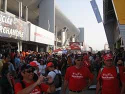 El adelantamiento - si es que se puede llamar así - de Alonso a Raikkonen en la zona del estadio fue quizás el momento más apoteósico de una carrera que a las 10 vueltas ya parecía sentenciada. El Ferrari de Massa cada vez se distanciaba más de los McLaren y el ánimo iba decayendo en las gradas. No por ello la fiesta dejó de ser completa, pero faltó la guinda de la victoria de Alonso. Bueno, otra vez será. El desarrollo de la carrera, al menos, sí que contribuyó a que la salida fuera escalonada. Yo cuando faltaban diez vueltas ya estaba cruzando la pasarela que daba acceso al parking. No hubo novedades de última hora y el podio fue el que ya sabemos todos.