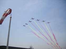 La escuadrilla de aviones del ejército volvieron a describir unas piruetas imposibles que acabaron por enardecer a los miles de espectadores que ya llenaban las gradas.