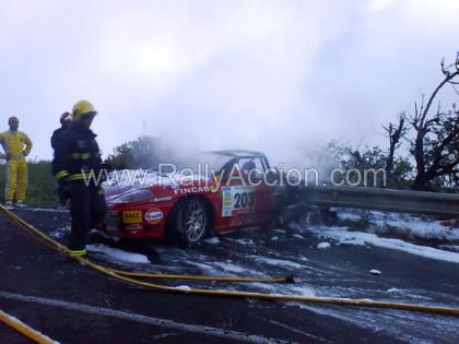 El primer tramo se lo iba a llevar el piloto canarion Armide Martín que con su Ferrari 360 Modena marcaba el mejor tiempo secundado por otro GT, el del gallego Sergio Vallejo. Todo continuó así marcando tramo tras tramo el coche italiano el mejor tiempo, la única excepción fue en el segundo tramo donde Miguel Fuster estrellaba literalmente su Fiat Grande Punto contra otro de los muros que limita la carretera arrancando su rueda delantera izquierda y retirándose del rally.