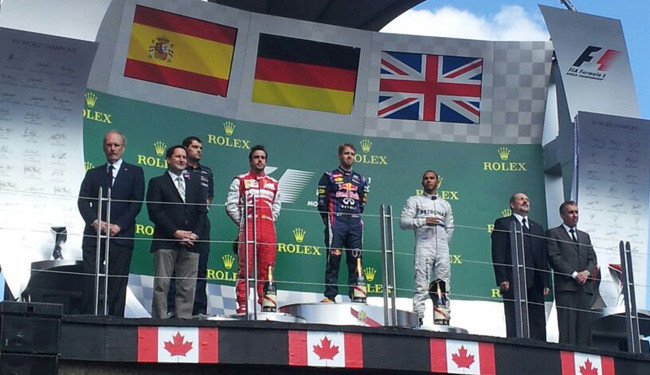 Con Vettel por delante, e incluso relajándose en un par de ocasiones algo que le pudo costar la carrera, Fernando Alonso completó una carrera sólida que le dio la segunda posición, minimizando la perdida. Lewis Hamilton completó el podio, uno más para Mercedes AMG, mientras que Mark Webber ha tenido que conformarse con la cuarta posición.