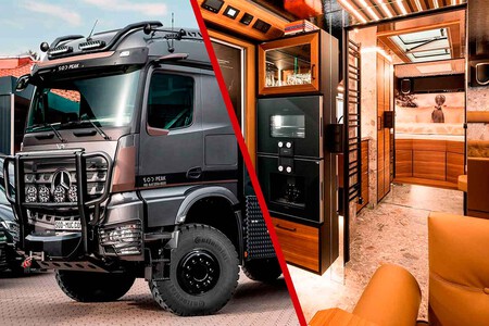 Por tener tiene hasta el techo estrellado del Rolls-Royce Ghost. Pero no es lo único de esta impresionante camper en la que podemos llevar un pequeño quad en la parte trasera en una plataforma y bajarlo a los suelos a toque de botón. Su precio es mareante, como cabía esperar.