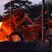 Durante la fundición, cuando la mena está expuesta a altas temperaturas, estas impurezas se separan del metal fundido y se pueden retirar. La colección de compuestos que se retira es la escoria. Sale por la piquera del horno a una temperatura próxima a los 1.500 ºC y su composición química depende de los minerales de hierro, de las cenizas del coque utilizado como combustible y de los óxidos de los fundentes empleados.