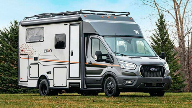 La firma Winnebago dispone de un amplio catálogo de autocaravanas y furgonetas camper, y entre las primeras una de sus propuestas más interesantes es la denominada Ekko, pues es la de menor tamaño y, por tanto más manejable. Estaría así a medio camino entre una autocaravana y una camper.