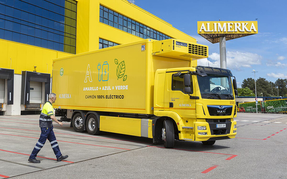 Ya son varias las propuestas de camiones 100 % eléctricos y entre ellos encontramos al germano MAN eTGM. Uno de ellos ya está prestando servicio en España, concretamente para la compañía de distribución asturiana Alimerka.