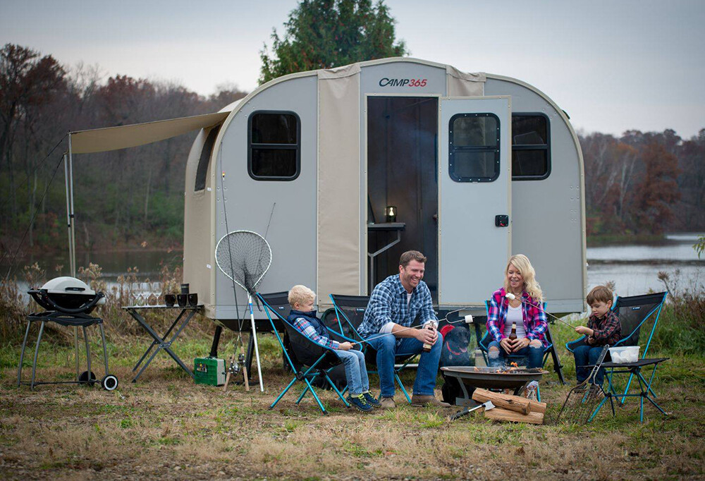 El caravaning está de moda y cada vez encontramos más propuestas, a cada cual más versátil. Y entre ellas encontramos este Camp365, que es un remolque camper que muta en una pequeña caravana cuando se despliega.