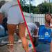 Descalza y con el depósito de lado. Lo cierto es que hicieron todo lo que no se debe hacer para vaciar el depósito de aguas negras. Ya comenzaron con problemas: no sabían ni como extraerlo de la autocaravana. Una vez resuelta la duda tutorial en mano, empezó el esperpento.