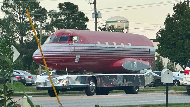 Imagina que vas tranquilamente conduciendo, te paras en un semáforo, miras por la ventanilla y te topas con un avión convertido en camper. Pues ha pasado: esta rarísima autocaravana construida con un Lockheed 1329 JetStar ha circulado como un coche más por las calles de Bentonville.
