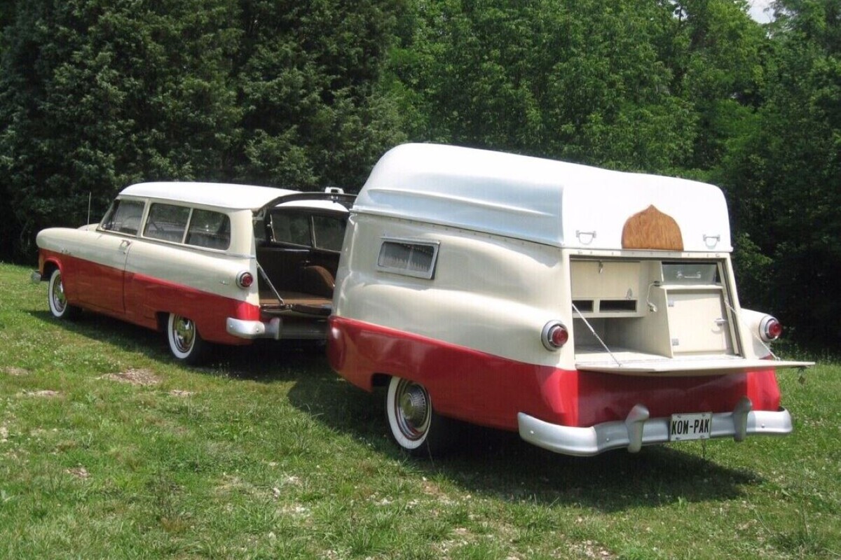 Fabricada en 1952 en Medford, Oregón (EEUU) por Kom-Pak Industries, esta curiosa camper nació de la idea de ofrecer una solución única a los aficionados al camping y a la pesca recreativa. Estaba construida íntegramente en fibra de vidrio, un material entonces experimental en el mundo de las caravanas, pero que permitía reducir peso y moldear formas mucho más fluidas que la chapa o el aluminio.