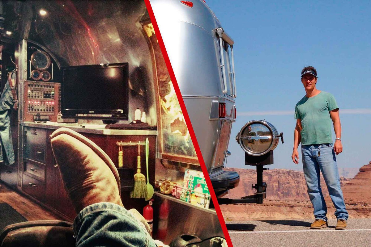 "En 1996 me compré una furgoneta GMC enorme, llamada Cosmo, la destripé y le puse una cama trasera, una nevera y una TV para poder ver el teledirario o lo que fuera. Aún así era bastante pequeña, así que empecé a buscar Airstreams", comenta McConaughey en esta entrevista a Architectural Digest. Abrió su adorada casa rodante a esta publicación especializada en interiorismo.
