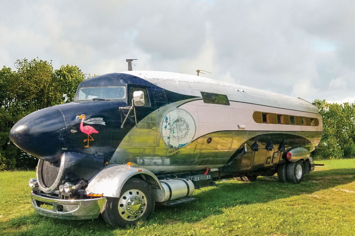 Los faros delanteros son los carenados originales de los motores, la parte trasera conserva los depósitos de punta de ala y los portones de emergencia siguen en su sitio. Cada detalle rinde homenaje a su pasado aeronáutico. “Queríamos que siguiera siendo un avión por dentro, no solo por fuera”, explicó el propio Lucci.