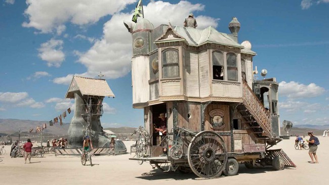 Una joya única itinerante. Esta Neverwas Haul se concibió en el The Shipyard, en Berkeley, California: un espacio donde artistas se dan cita para dar forma a creaciones tan locas como esta casa victoriana ambulante. Su debut ante el mundo fue en el Burning Man de 2006, un festival de expresión artística que se celebra en el desierto de Black Rock (Nevada): el mismo donde se han firmado récords de velocidad como el del Thrust SSC, el "coche" que consiguió romper la barrera del sonido.