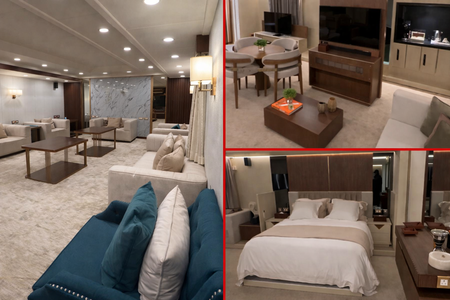 Uno de los camiones alberga la suite personal del piloto, con cama king size, vestidor, baño completo y una pequeña zona de estar. Otro funciona como salón principal, con sofás en U, televisión de gran formato y acabados propios de una vivienda de lujo de Oriente Medio. El tercero queda reservado para invitados y equipo, con un nivel de confort que sigue estando muy por encima de lo habitual en el Dakar.