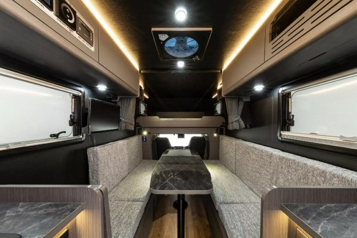 Sobre esa plataforma, Direct Cars ha montado un módulo camper acabado en revestimiento “tipo Raptor” resistente a arañazos, con estética robusta, llantas y neumáticos específicos y luces LED adicionales rollo 4x4. El acceso se realiza por el portón trasero y, el interior, recuerda al de una autocaravana de gama alta, pero comprimido al máximo.