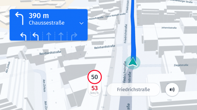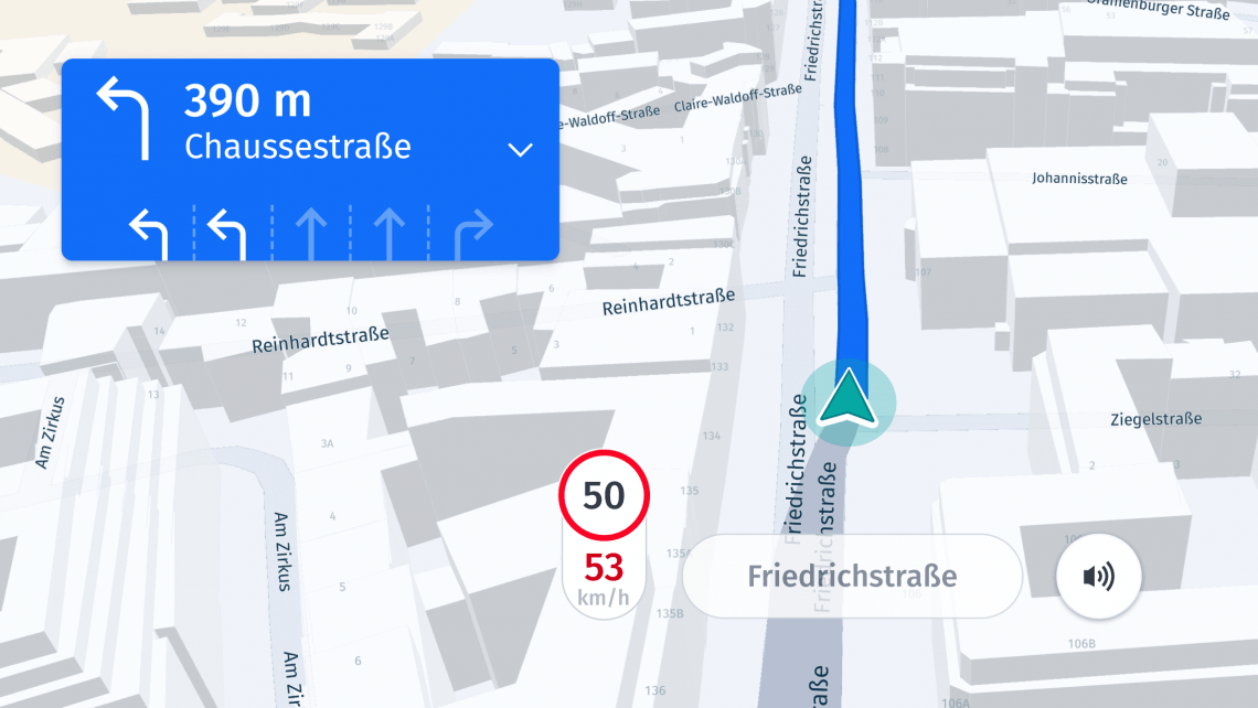 De igual modo, a bordo de un vehículo (incluso si éste no dispone de Android Auto) HERE WeGO es capaz de proporcionar instrucciones vocales del mismo modo que los navegadores clásicos de automoción.