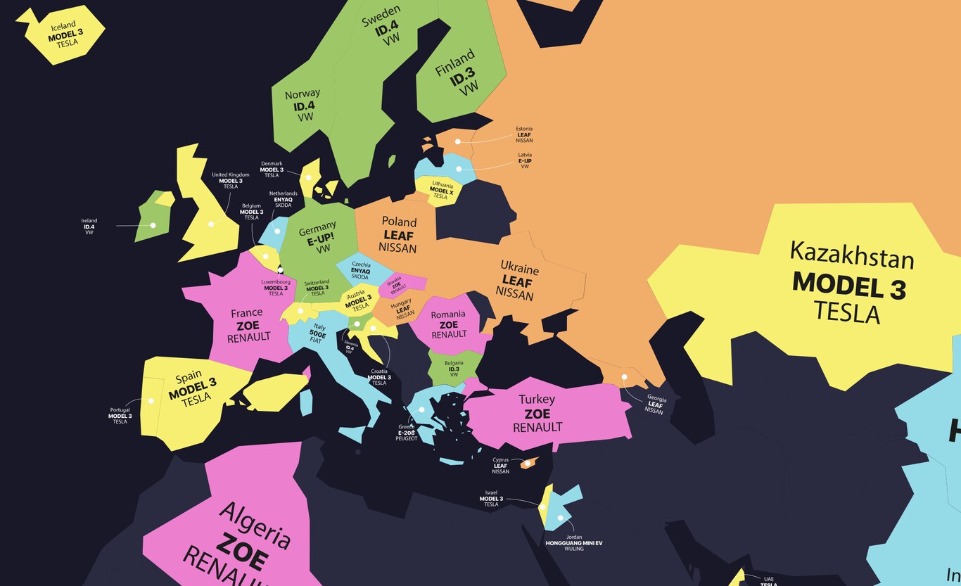 Pero las ventas de cada país son diferentes y eso se refleja también el coche favorito de cada región. Por eso, Uswitch ha realizado un mapa interactivo que muestra las preferencias de los consumidores a la hora de elegir su coche eléctrico preferido.