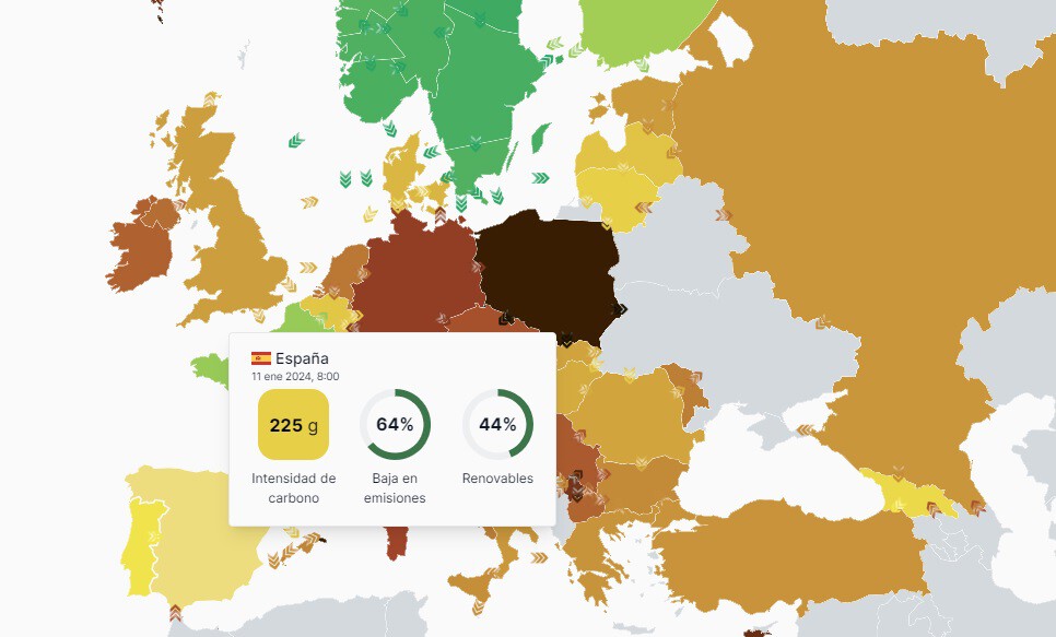 Pero existe un mapa interactivo de código abierto que permite a cualquier ciudadano del mundo interesado entender el mix energético de cada país o el impacto climático de la electricidad que consume en tiempo real, para entender qué hay detrás del simple gesto de encender la luz o recargar la batería de tu coche eléctrico.