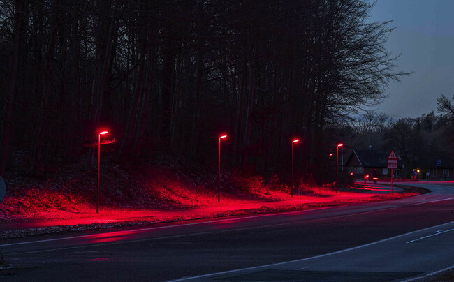 Cae la noche en un pequeño pueblo rodeado de bosques. Las farolas se van encendiendo poco a poco y en las calles casi desiertas, una luz roja lo ilumina todo. No es la secuencia de inicio de una película olvidada de John Carpenter sino algo muy real. Ocurre cada noche en Frederiksborgvej, un pequeño pueblo del municipio de Gladsaxe, situado a 13 kilómetros al norte de Copenhague (Dinamarca).