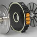 Simplificando al extremo, el motor axial es como un motor radial pero invertido. En el motor radial, es el rotor que hay dentro de las bobinas el que gira, mientras que en el axial, son los dos discos exteriores que giran alrededor del disco central fijo (stator) con el bobinaje.