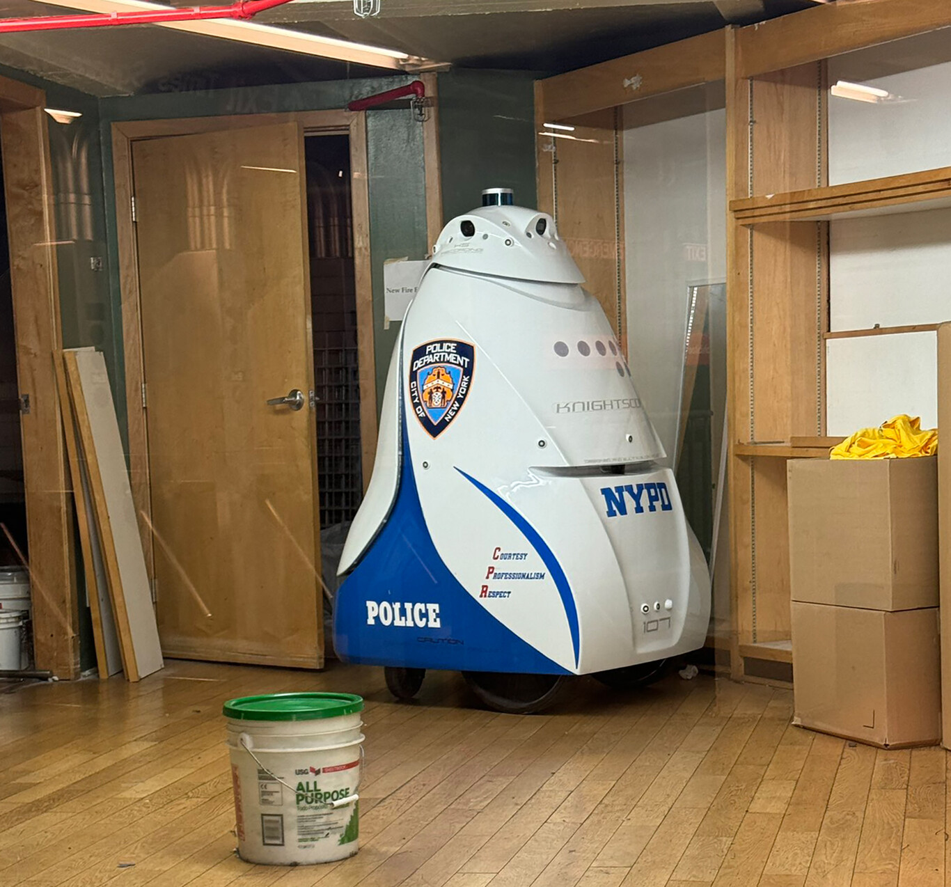 The biggest tourist attraction in Times Square of the moment? The NYPD’s mothballed robot, Knightscope K5, sitting forlorn in a vacant subway storefront. pic.twitter.com/gH2FpsPXcM