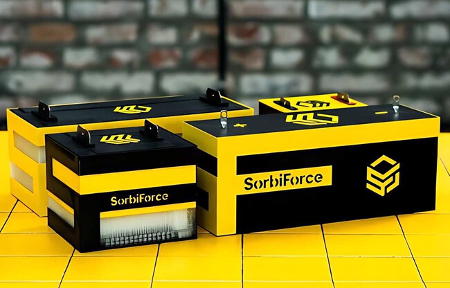 Esta batería estacionaria la firma SorbiForce, y se caracteriza por ser tan segura y sostenible que podría sentar un nuevo estándar en el almacenamiento de energía limpia. Pesa 20 toneladas y no moverá coches eléctricos, pero sí puede alimentar casas con paneles solares, granjas aisladas o estaciones de carga en comunidades sin red eléctrica estable.