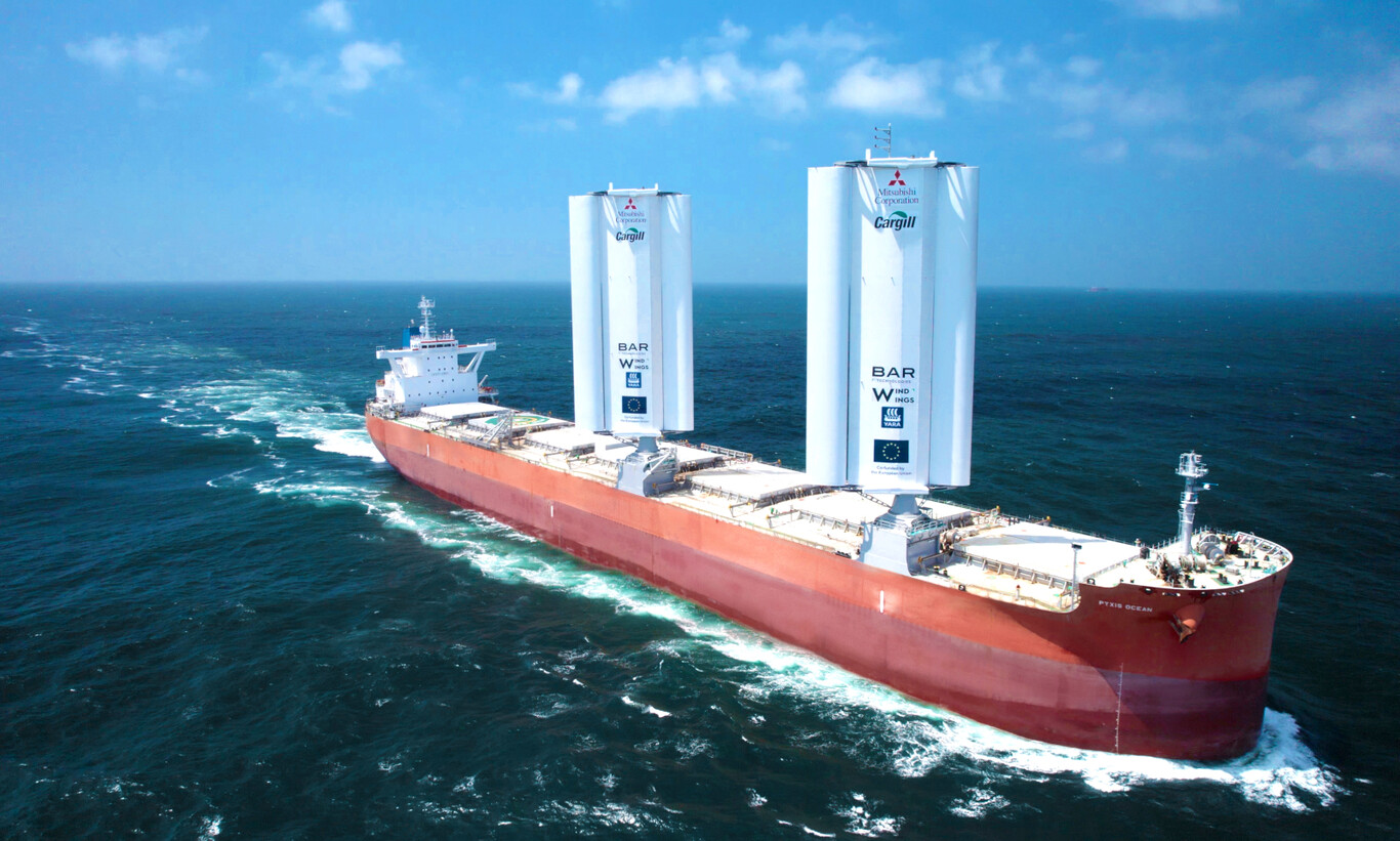 La gran mayoría de buques de carga de transporte siguen moviéndose con gigantescos motores diésel. Pero tienen un problema: lo que contaminan y el coste del combustible, que será aún mayor en pocos años. Y este buque, que es el primero moderno apoyado en las gigantescas velas WindWings, pretende ayudar a reducir ambos.