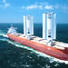 Hasta un 30 % menos de emisiones. Este carguero se convierte en el primero en estrenar dos de estas WindWings y echarse al océano. Se trata de dos gigantescas velas de 37,5 metros que están fabricadas en un compuesto dde acero y vidrio, el mismo material que el de alas de las turbinas eólicas. Al llegar a puerto se pliegan y en aguas abiertas se despliegan. Su cometido es el de asistir a la mecánica térmica gracias al viento.