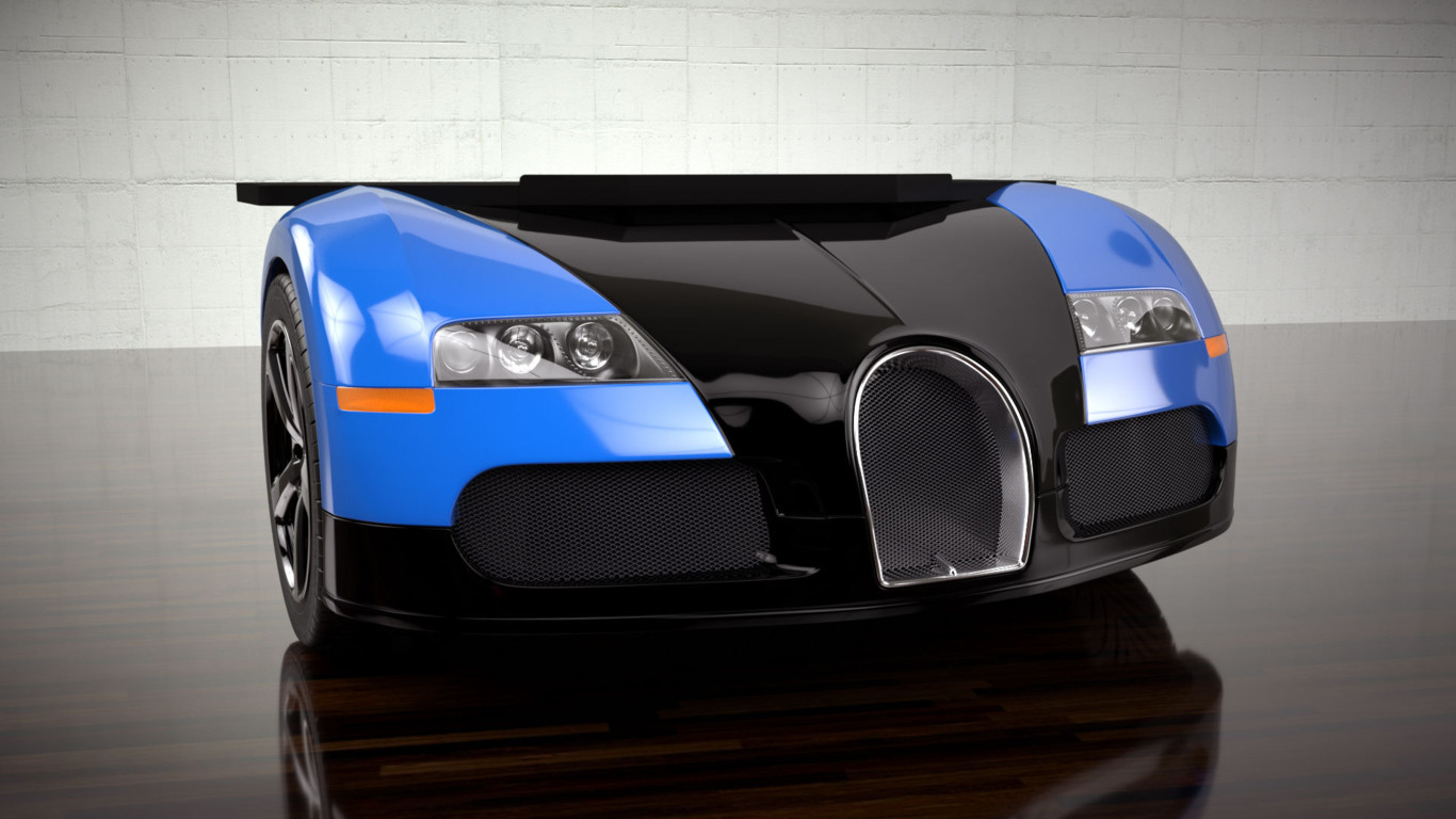 Hoy la cosa va de artilugios basados en automóviles. ¿Qué te parecería tener una mesa de despacho con… digamos 1.000 caballos de potencia? Aquí lo tienes, un escritorio con el frontal de un Bugatti Veyron, ideal para intimidar al resto de la oficina con esas enormes rejillas delanteras. Seguro que es la mesa más potente de la oficina.