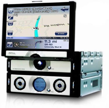 El Infill T3 no es una radio normal, es todo un ordenador con un procesador a 1 GHz, disco duro de 40 GB y 512 MB de RAM, con un reproductor de DVD y una pantalla de 7 pulgadas, todo ello gobernado por Windows XP.