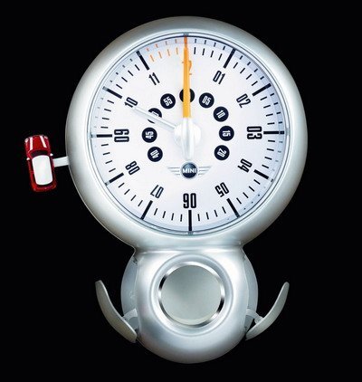 A cada hora en punto, el pequeño Mini da una vuelta rodeando el reloj, sonido de motor y claxon incluido. Se venderá en Reino Unido y no sabemos si llegará a España (os avisaré si me entero). Allí tendrá un precio de 69.95 libras, unos 103 euros.