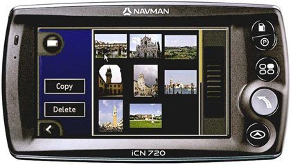 Pero no, porque no es solo un navegador GPS con cámara de fotos y disco duro de 4 GB, es más que eso. La cámara no se usa para guardar fotos de donde has estado, sino que se usa para guardar la coordenadas de donde has estado. Me explico, tu pasas por un punto que encuentras de especial interés, le haces una foto y el Navman iCN720 memoriza las coordenadas de ese punto y las guarda gracias a su sistema NavPix. Una vez guardada la foto, si la seleccionas, él solo calculará la ruta desde el punto donde te encuentras hasta el punto donde hiciste la foto.