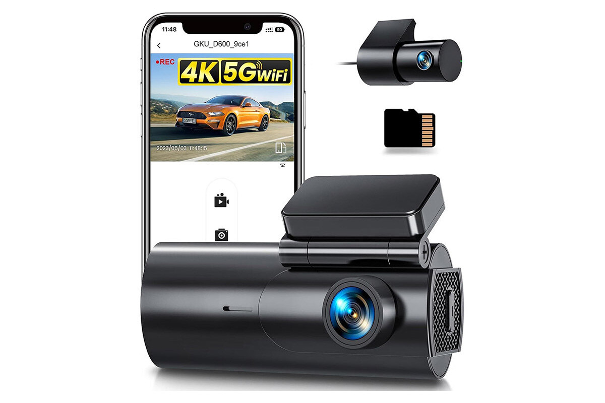 GKU Dashcam Cámara Coche 4K+1080P, 5GHz WiFi &GPS, 1.5'' IPS Dash CAM Coche con Tarjeta SD de 64GB,Camara Coche Grabadora,170° Gran Angular,Visión Nocturn,WDR,Sensor G,Monitor de Aparcamiento