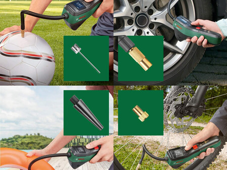 Este inflador de Bosch, que es el más vendido de su categoría y que ahora está de oferta en Amazon, es el mejor ejemplo de inflador ligero, práctico y completo. No solo nos servirá para comprobar la presión de las redas del coche e inflarlas si es necesario, sino que podremos utilizarlo para otros vehículos como una moto o una bici, un patinete o incluso un balón.