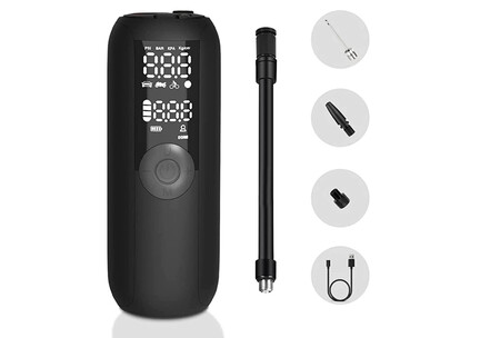 Como es habitual en este tipo de dispositivos, este Woowind LP1 incluye varias boquillas, incluyendo válvula para coche, por lo que además de ruedas de vehículos también permite inflar neumáticos de bicicletas además de balones o colchonetas, entre otros. También viene con un cable USB para cargarlo y una bolsa de almacenamiento.