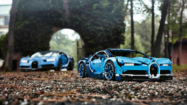 Un total de 3.599 piezas conforman el set del Bugatti Chiron, que es a escala 1:8 (mide 56 cm de largo, 25 de ancho y 14 cm de alto). Esconde una reproducción de su poderoso W16 central, que cuenta con pistones móviles y también son funcionales las suspensiones, la caja de cambios o el alerón trasero.
