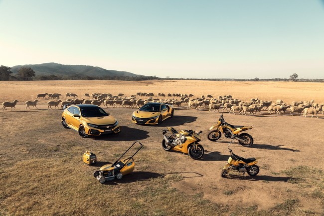 A modo de celebración para el 50 aniversario de Honda en Australia, la división australiana del fabricante japonés ha decidido mostrar algunos de sus modelos con carrocería de color dorado. Hablamos de sus dos coches más deportivos, pero también motos y hasta un cortacésped.